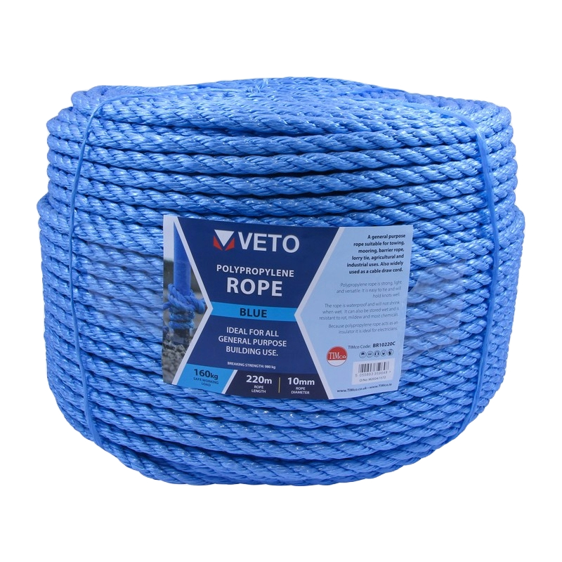 10mm x 220m Coil Blue Polypropylene Rope 214895